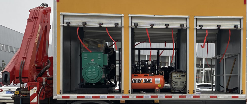 其它:1、該車主要用于搶險救災、賽事活動等的應急照明支援;主要專用裝置:照明系統,發電機組,吊機等;廂體頂部密閉,不可開啟。2、側防護為裙邊結構,材料Q235;后防護材料采用Q235,螺栓連接,截面尺寸125×60mm,下邊緣離地高485mm。3、ABS型號/生產廠家:3631010-C2000/東科克諾爾商用車制動系統(十堰)有限公司。