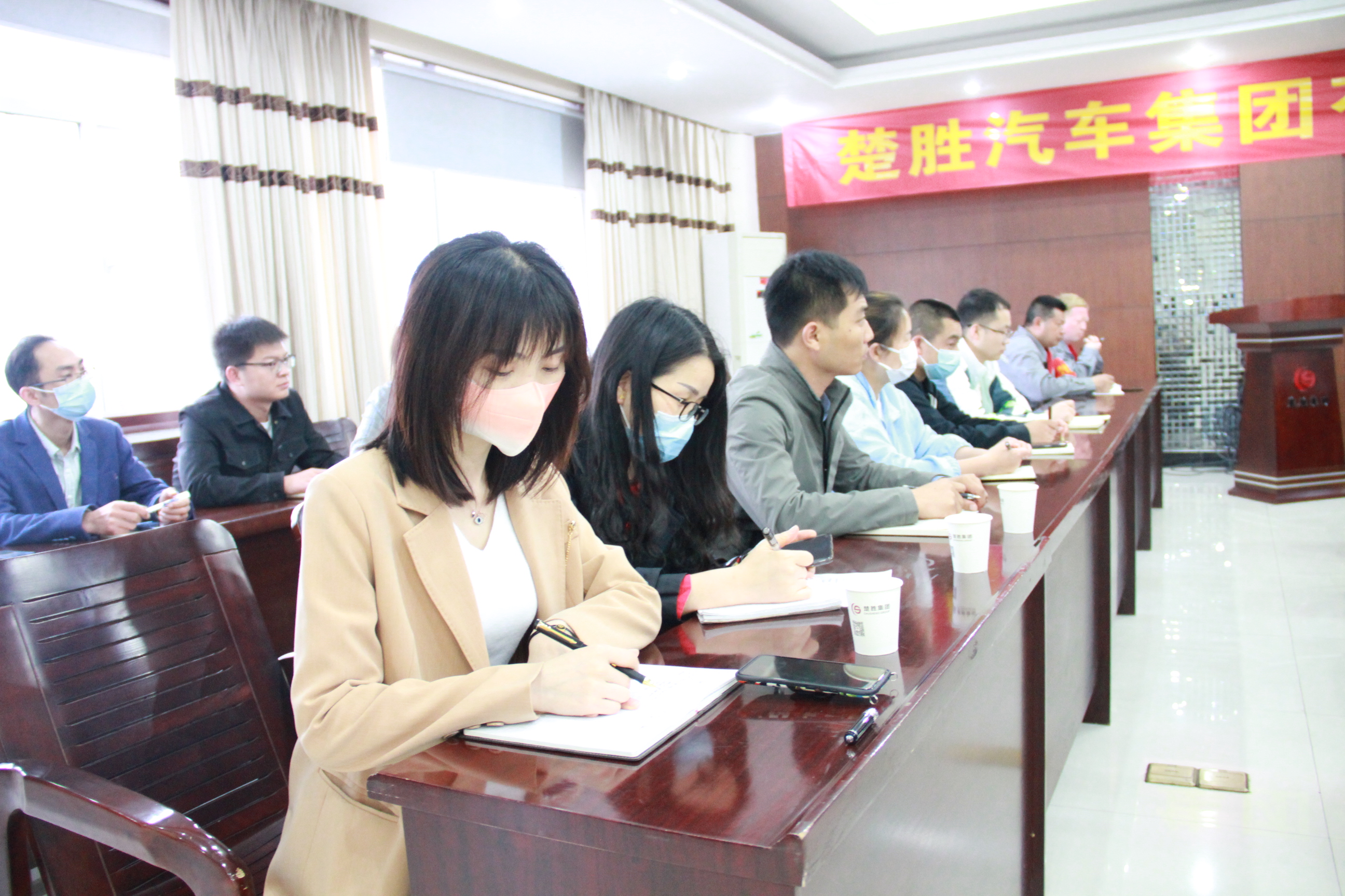 楚勝汽車集團黨總支書記、副董事長傅冠生、總裁王小康等公司領導以及職工代表共50余人參加了會議。