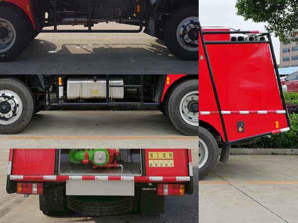 水罐容積:2.1立方米,水罐尺寸:2100×950×1100mm。ABS生產(chǎn)企業(yè)為廣州科密汽車電子技術(shù)股份有限公司,型號為CM4XL-4S/4K(4S/4M)。主要專用裝置有消防泵。根據(jù)GB7956.1-2014,該車采用越野底盤改制,防護裝置不適用。